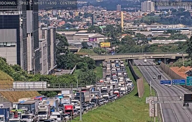 O acidente aconteceu na altura do Km 7, nessa terça – feira dia 7/4, por volta das 10h da manhã e envolveu duas carretas e dois automóveis, interditando todas as faixas do Rodoanel.