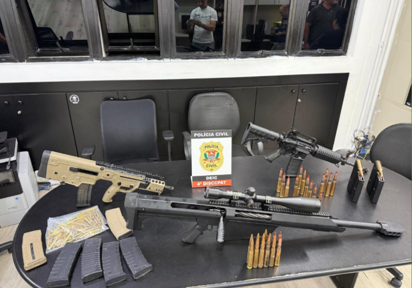 O caso foi registrado como associação criminosa, uso de documento falso, posse ou porte ilegal de arma de fogo, receptação, adulteração de sinal identificador de veículo automotor e falsificação de documento público.