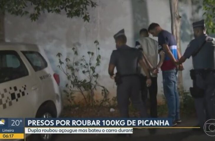Dois criminosos foram presos em flagrante depois de roubarem mais de 100 kg de picanha avaliadas em cerca de R$ 30 mil de um açougue no Centro de São Paulo. A Polícia Militar (PM) deteve os suspeitos e recuperou a carga de carne após perseguição na Zona Sul da capital. O caso ocorreu na noite de segunda-feira (27).