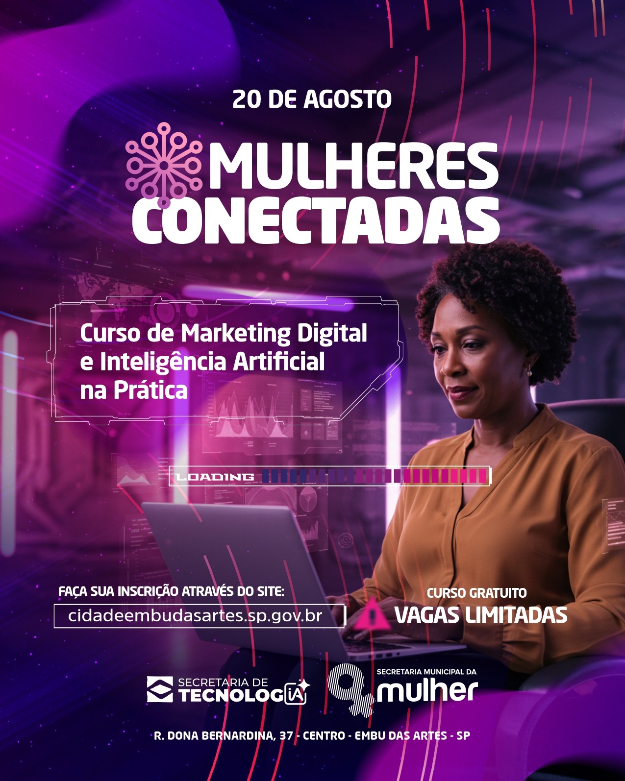 A Prefeitura de Embu das Artes, por meio da Secretaria da Mulher e da Secretaria de Tecnologia, vai oferecer o curso gratuito Mulheres Conectadas a partir do dia 20/8.