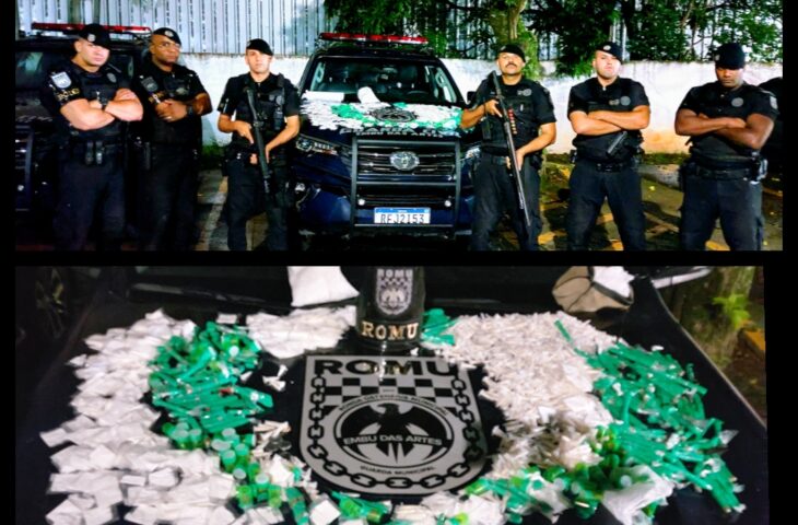 A Romu de Embu das Artes prendeu acusado de tráfico de drogas com mais de 2 mil porções de entorpecentes, cerca de 30 mil reais de prejuízo para o tráfico.