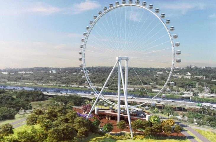 A roda gigante de 91 metros de altura, anunciada em outubro de 2020 pelo governo do estado, começou a ser instalada no Parque Cândido Portinari, na Zona Oeste de São Paulo, e tem previsão de ser inaugurada em julho.